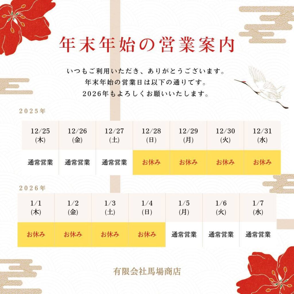 年末年始の営業について | 有限会社 馬場商店